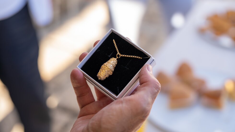 Símbolo de estatuto social, a peça arqueológica original (século VI) distingue-se pela raridade, autenticidade e elegância, critérios rigorosamente respeitados na réplica em ouro e em prata dourada idealizada pela Câmara Municipal de Vila Nova de Cerveira e que passará a ser comercializada pelos ourives locais já este verão.