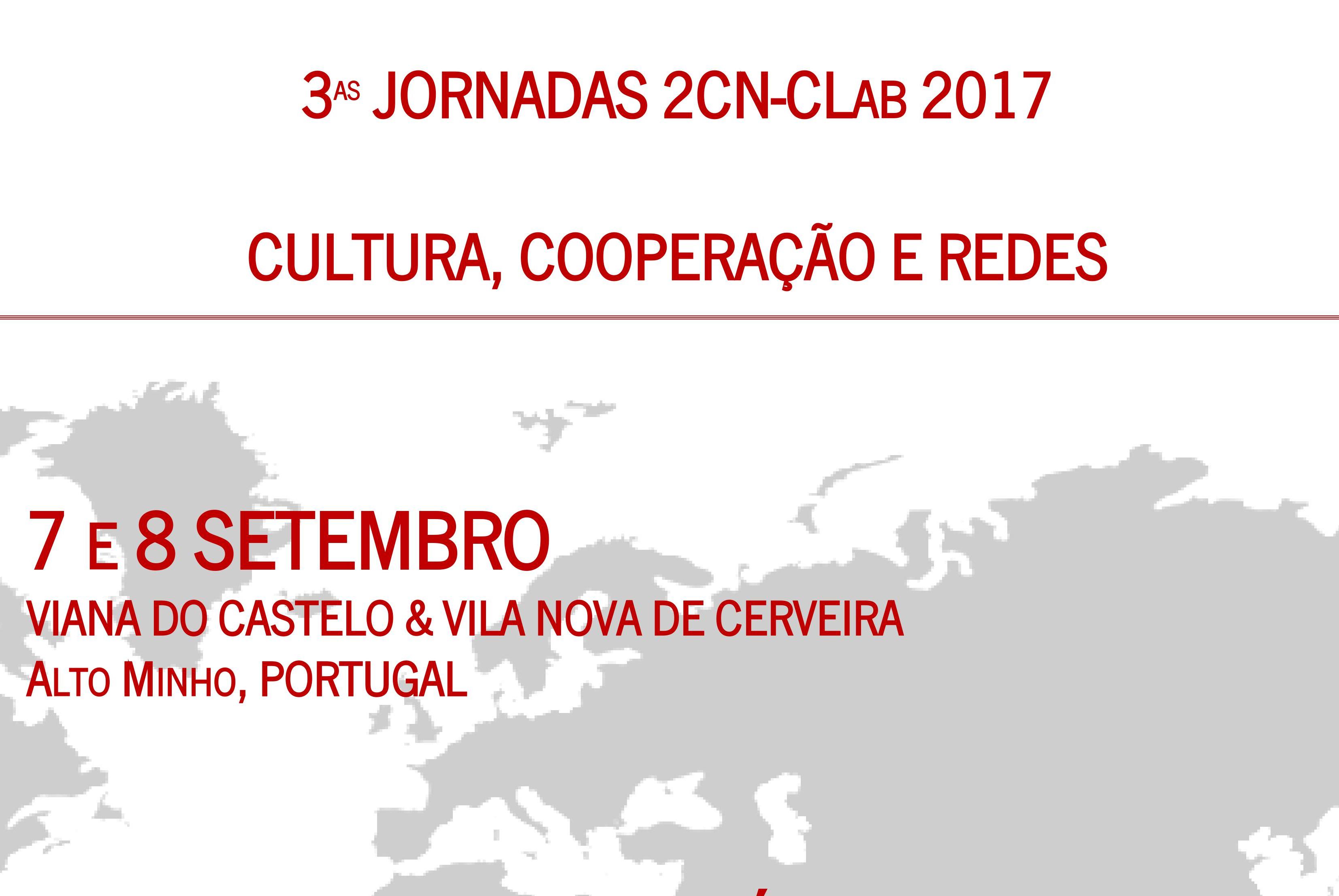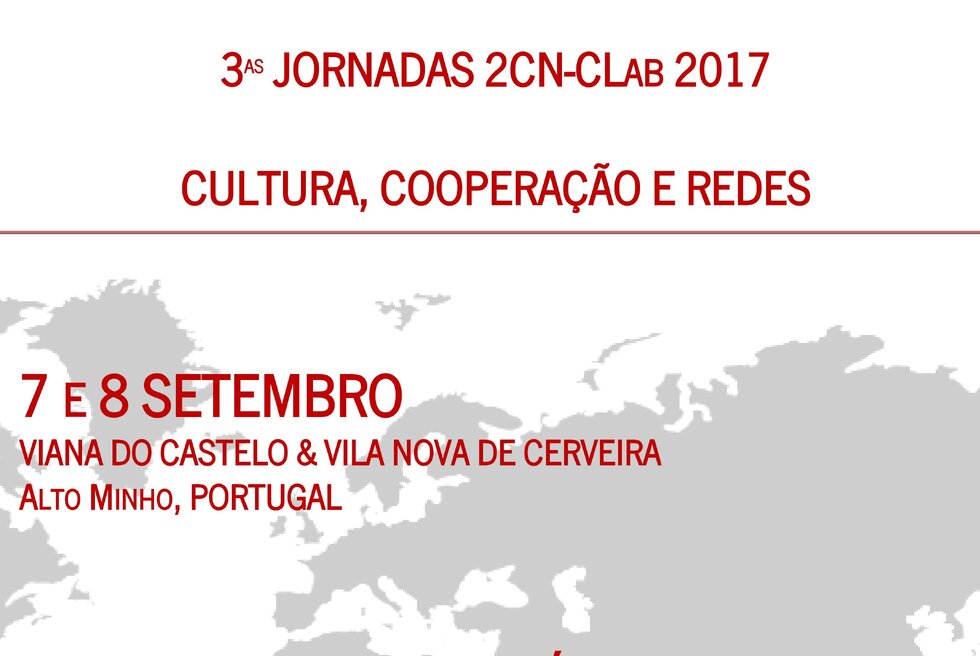 Vila Nova de Cerveira e Viana do Castelo vão acolher as 3.as Jornadas Cultural Cooperation Networks – Creative Laboratory (2CN-CLAB) “Cultura, Cooperação e Redes”, nos próximos dias 7 e 8 de setembro. O 2CN-CLAB 2017 está a ser promovido desde janeiro de 2016 em Portugal, Espanha e no Brasil, no âmbito do projeto “Redes de Cooperação Cultural Transnacionais: Portugal Europeu, Lusófono e Ibero-Americano”, com o apoio da Fundação para a Ciência e a Tecnologia.