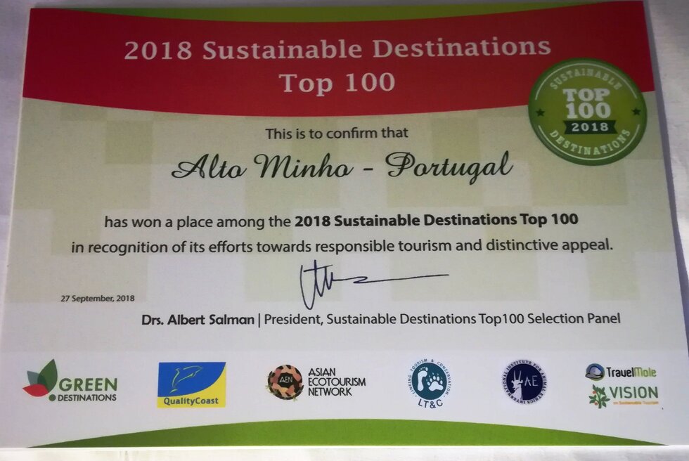 O Alto Minho integra, pela primeira vez, a lista dos 100 melhores destinos sustentáveis do mundo no âmbito da iniciativa “Top 100 Sustainable Destinations 2018”. O anúncio oficial foi feito ontem, dia 27 de setembro, data que assinala o Dia Mundial do Turismo, na Conferência Global Green Destinations, na Holanda. A região do Alto Minho abarca os dez concelhos do distrito de Viana do Castelo, nomeadamente Arcos de Valdevez, Caminha, Melgaço, Monção, Paredes de Coura, Ponte da Barca, Ponte de Lima, Valença, Viana do Castelo e Vila Nova de Cerveira, e possui uma área de 2210 km2.