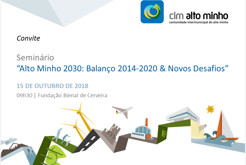 No dia em que celebra o seu décimo aniversário, no próximo dia 15 de outubro de 2018, a Comunidade Intermunicipal do Alto Minho (CIM Alto Minho) dá sequência, em parceria com os principais atores regionais, ao processo de preparação da Estratégia Integrada de Desenvolvimento Territorial “Alto Minho 2030”, através da realização do seminário "Alto Minho 2030: Balanço 2014-2020 & Novos Desafios". O objetivo é promover o debate e a reflexão coletiva sobre a visão, as prioridades de desenvolvimento e as principais iniciativas/projetos a concretizar neste espaço regional no horizonte 2030.