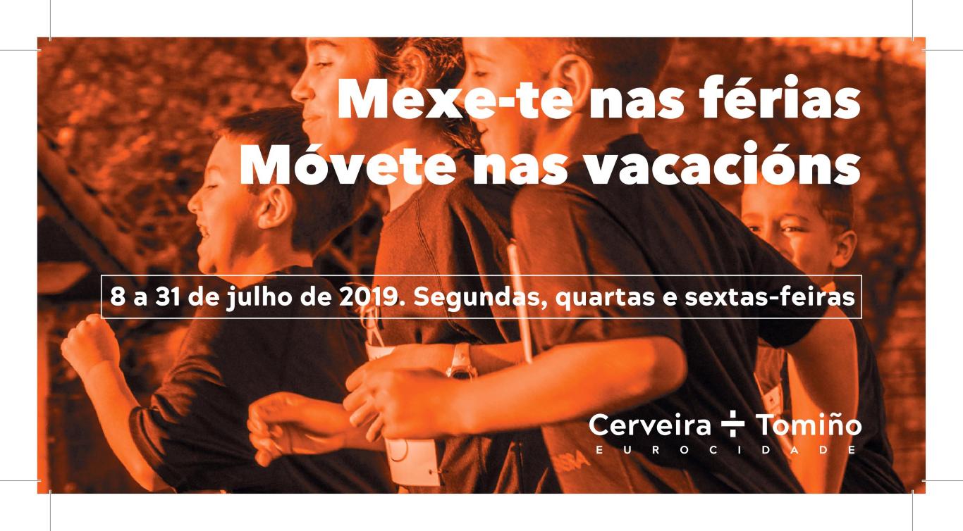 Sendo um dos vencedores do Orçamento Participativo Transfronteiriço Cerveira-Tomiño 2019, o projeto “Mexe-te nas Férias | Móvete nas Vacacións” vai ser promovido, entre 8 e 31 de julho, pelas Associações de Pais dos Centros Escolares do Norte e da Vila (Vila Nova de Cerveira) e pela Mesa de ANPAS dos Centros Educativos de Tomiño. Atividades são dirigidas a crianças entre os 6 aos 12 anos.