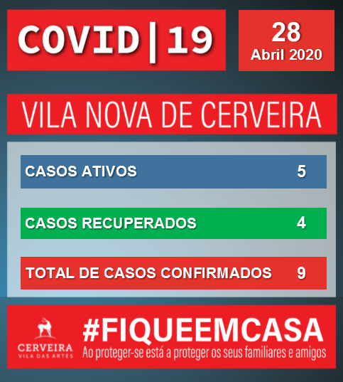 À data de 3ª feira, 28 de abril, Vila Nova de Cerveira regista 𝗺𝗮𝗶𝘀 𝟭 𝗰𝗮𝘀𝗼 𝗰𝗼𝗻𝗳𝗶𝗿𝗺𝗮𝗱𝗼 𝗰𝗼𝗺𝗼 𝗽𝗼𝘀𝗶𝘁𝗶𝘃𝗼 reportado à Freguesia de Sapardos, subindo para 5 os casos ativos.