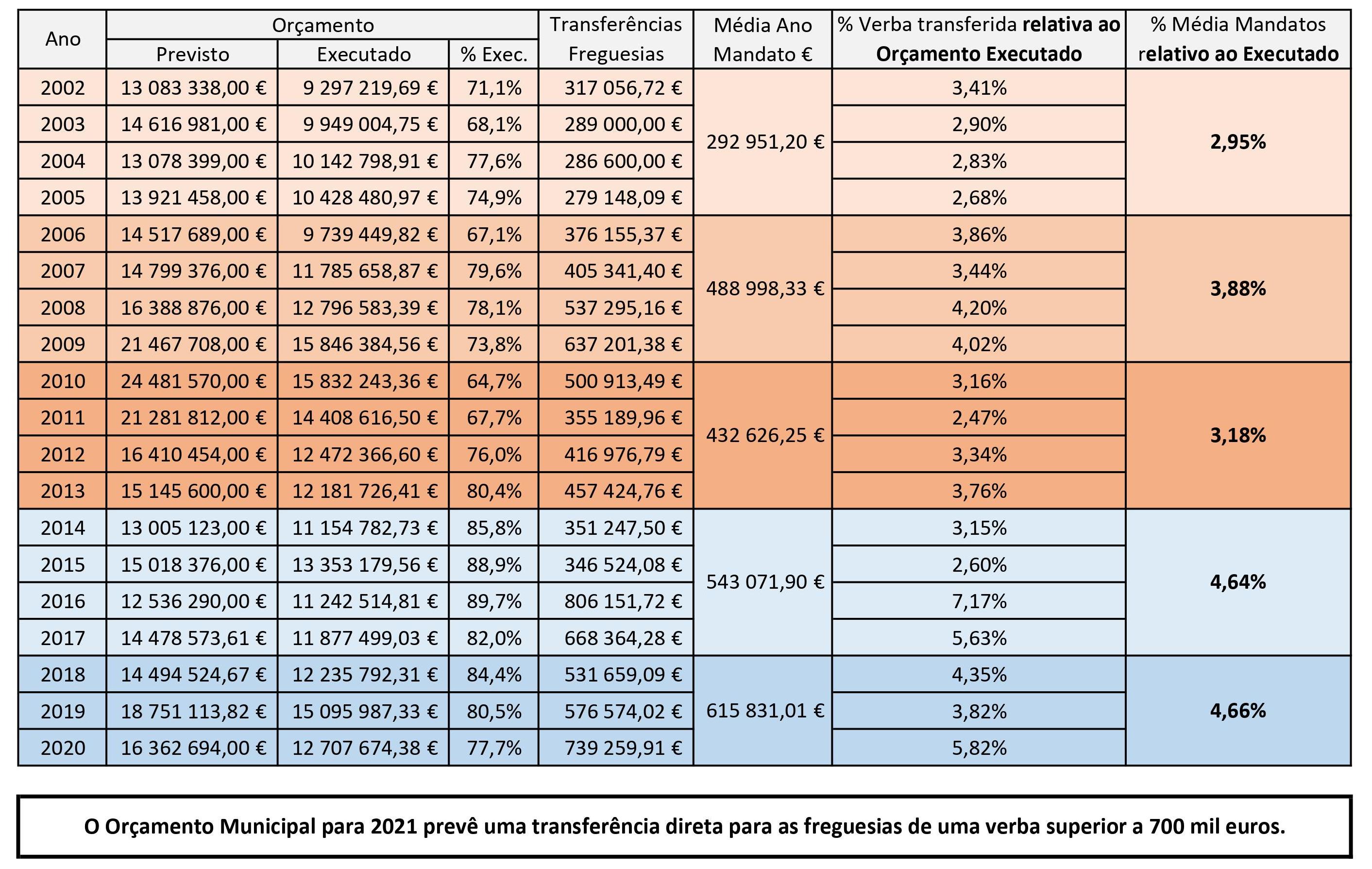Transferências para as Freguesias 2002-2020