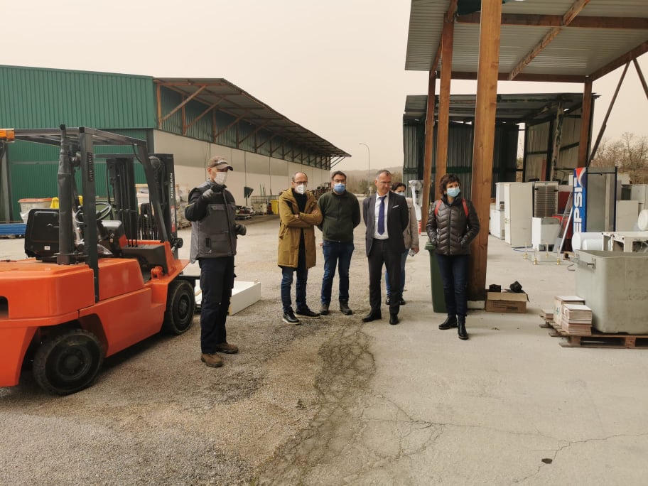 Posteriormente, a delegação da Eurocidade Cerveira-Tomiño, composta ainda pela concelheira do Meio Ambiente de Tomiño, Ana Belén Casaleiro, e por técnicos de ambos os concelhos, visitou o Ponto de Recolha e Recuperação de Resíduos localizado no Polígono de Chorente.