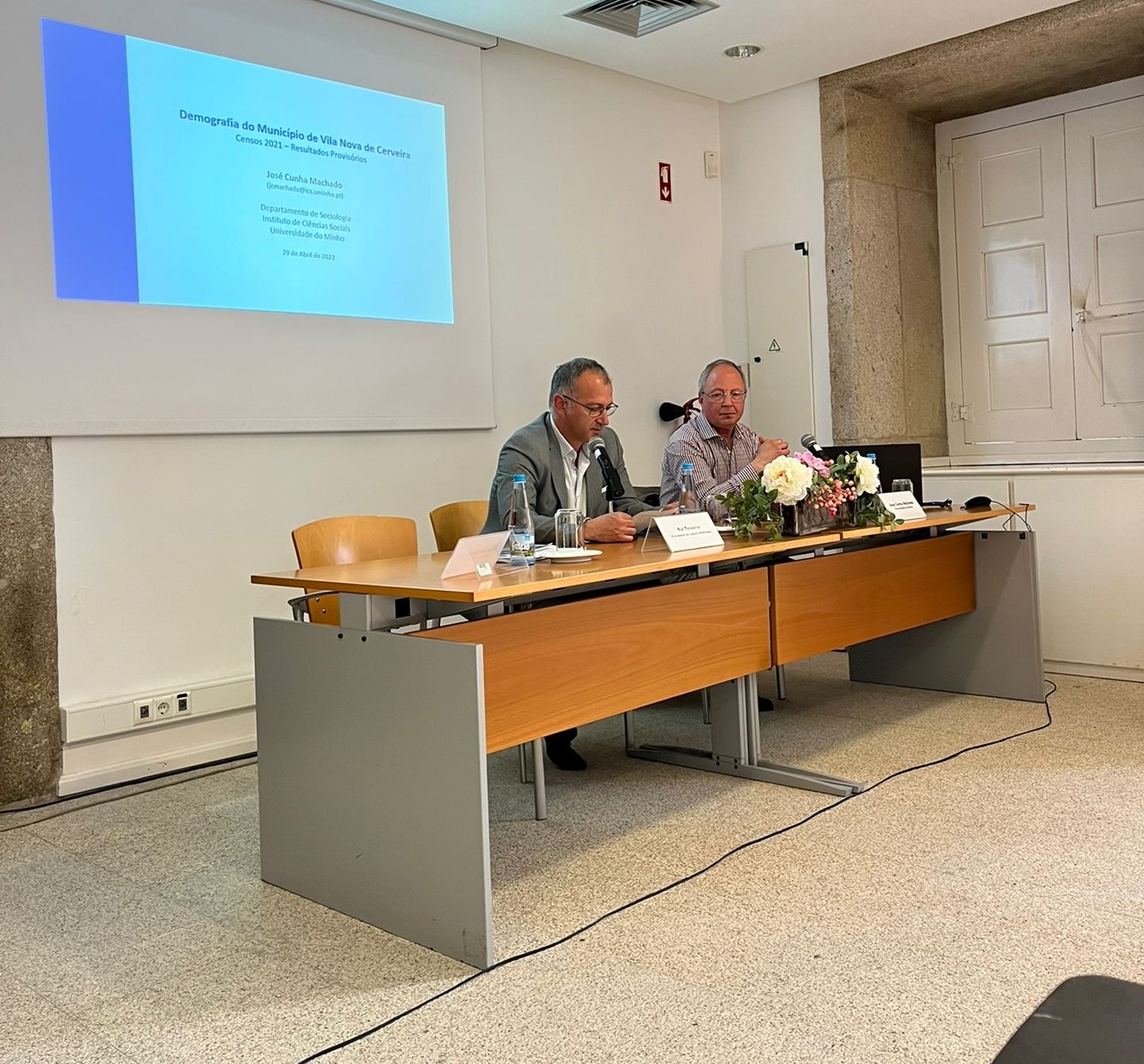 Atualmente, o concelho de Vila Nova de Cerveira apresenta-se com a média de um jovem por cada dois idosos, de acordo com os dados provisórios dos Censos 2021. Este dado, complementado com as causas, consequências e possíveis soluções, foi um dos mais abordados na primeira conferência do inédito projeto municipal 'Em Cerveira, Acontece...', realizada na passada sexta-feira, no Auditório da Biblioteca Municipal, com a presença do Presidente da Câmara Municipal, Rui Teixeira, e do Professor Doutor do Instituto de Ciências Sociais da Universidade do Minho, José Cunha Machado, sob moderação do Doutor Fernando Cabodeira.