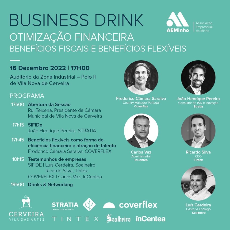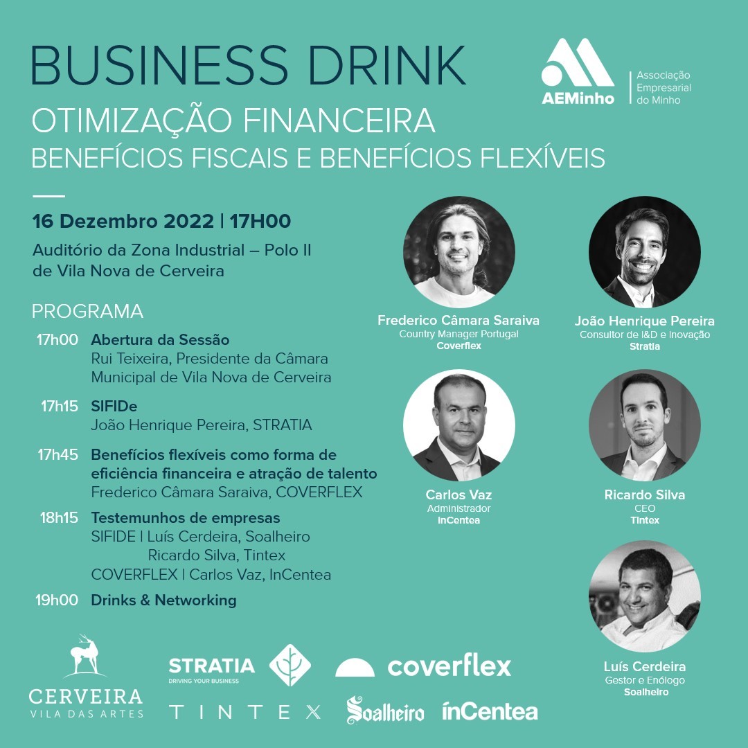 Na próxima sexta-feira, 16 de dezembro, o Auditório da Zona Industrial de Vila Nova de Cerveira – Polo II acolhe um Business Drink, onde se abordará a temática da otimização financeira pela via do incentivo fiscal – SIFIDe e os benefícios flexíveis, que podem ser um forte contributo para fixação de pessoas nas empresas. A iniciativa, organizada pela AEMinho com o apoio da Câmara Municipal de Vila Nova de Cerveira, está agendada para as 17h00.