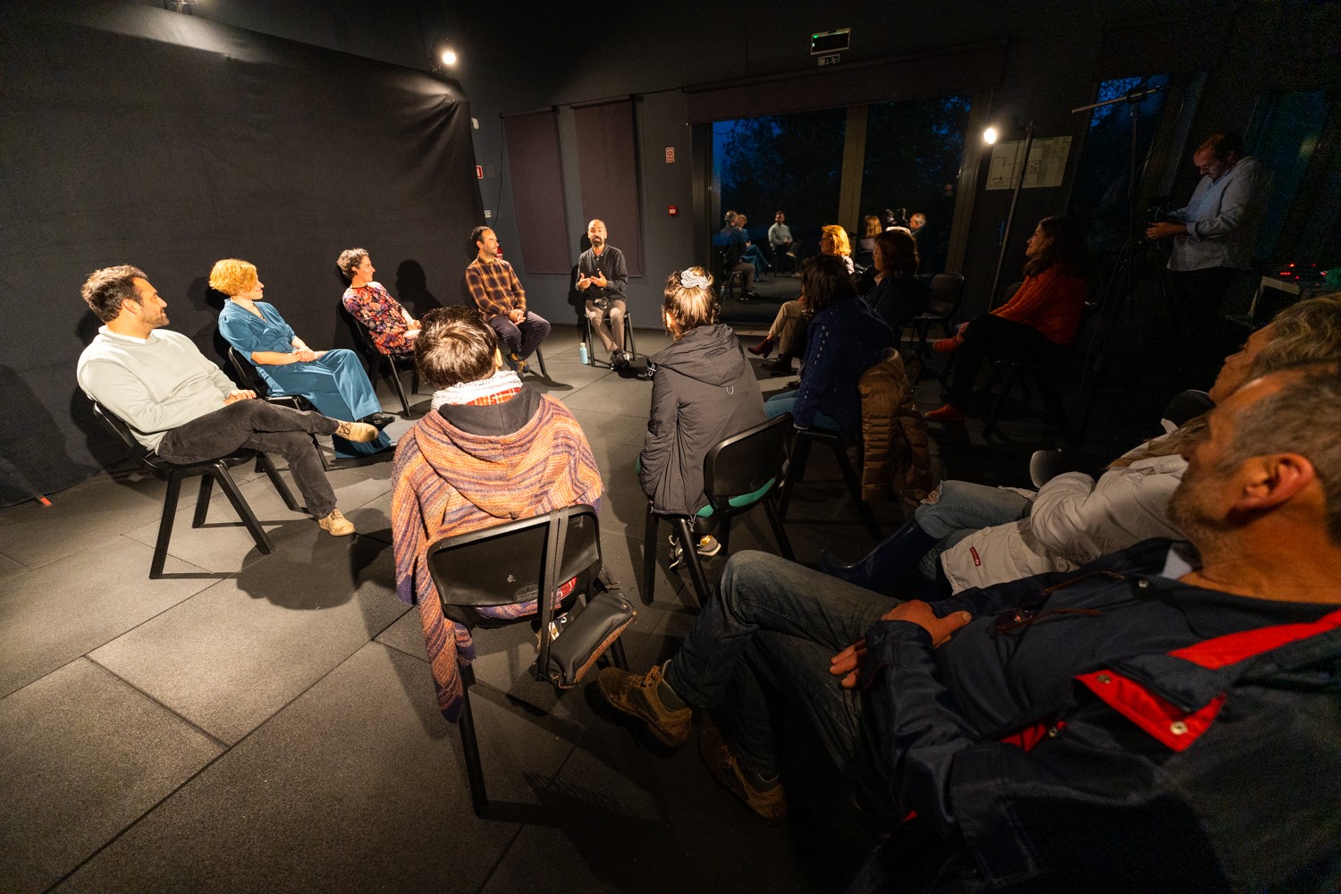 O processo de construção do espetáculo partiu de uma recolha de relatos, crenças e cantigas realizada em territórios do Alto Minho, propondo revisitar essa prática antiquíssima de contar histórias. “Uma Roda: entre histórias” tem a forma de uma roda, um círculo de pessoas, na qual os contadores de histórias entretecem as suas narrativas, num diálogo informal entre si e o público.