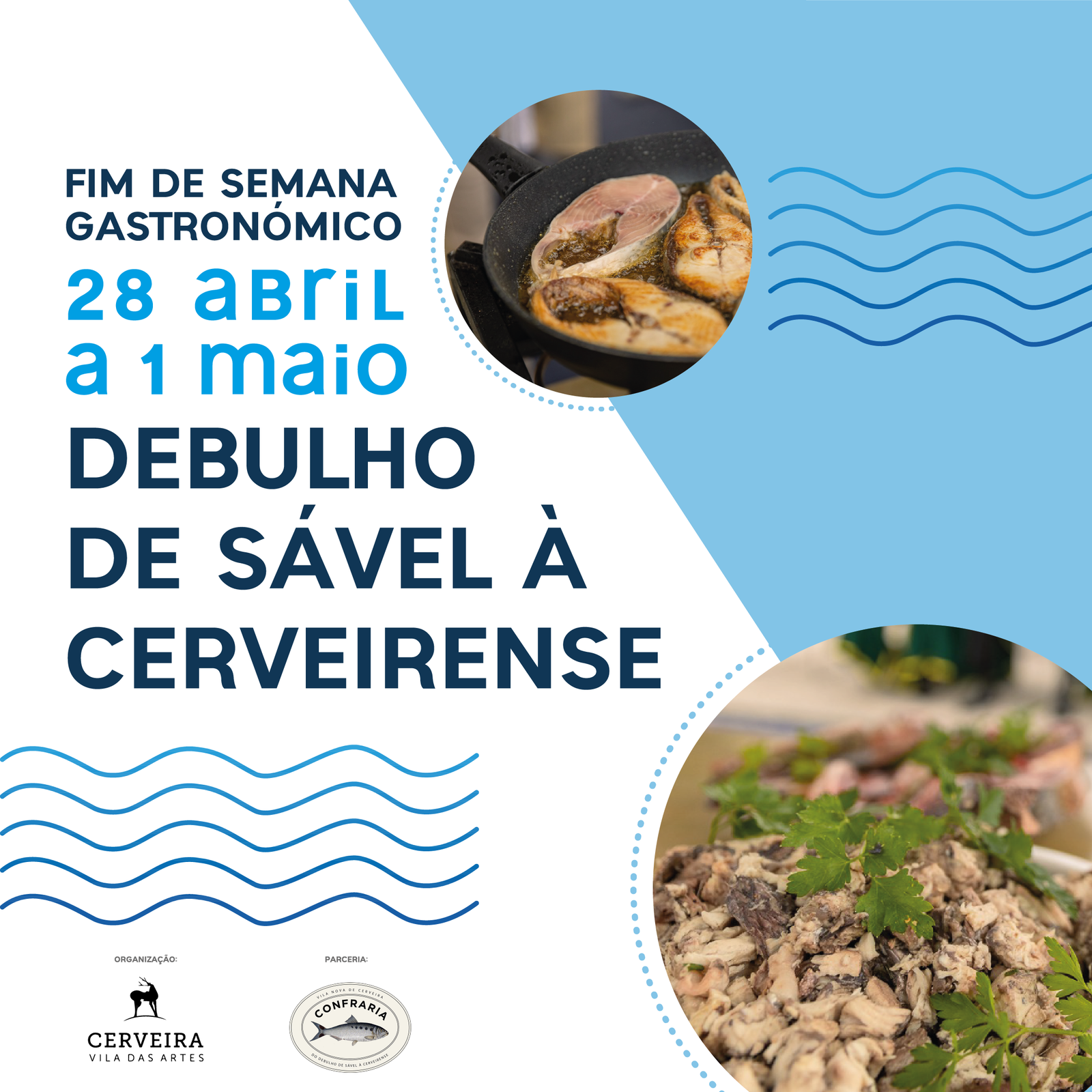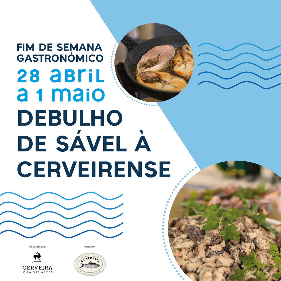 Assim, no domingo, 30 de abril, a partir das 11h00, no Terreiro, os apreciadores do Debulho de Sável vão poder aprender alguns dos segredos da receita tradicional, com dois membros da recém-criada Confraria do Debulho de Sável à Cerveirense, bem como perceber que sugestões inovadoras se podem imputar ao prato, de forma a cativar o público mais jovem, com a presença do Chef Francisco Jr. Oliveira Ferreira acompanhado do SubChef Diogo Sousa Moreira.