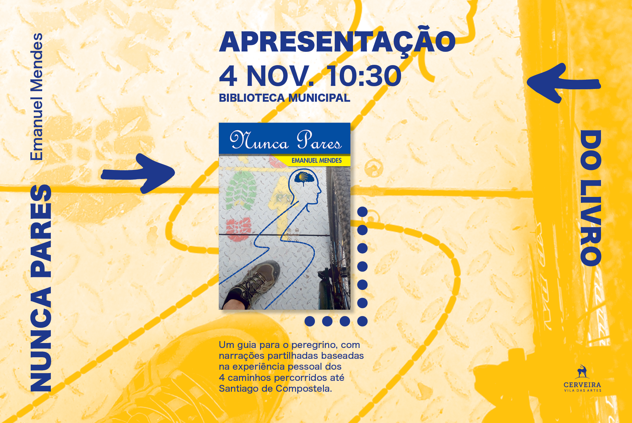A Biblioteca Municipal de Vila Nova de Cerveira acolhe, este sábado, 4 de novembro, pelas 10h30, a apresentação do livro “Nunca Pares”, da autoria de Emanuel Mendes, que descreve a experiência pessoal ao longo dos Caminhos de Santiago e de Fátima, onde “há uma vida de conhecimento, aventuras e caminhos pela frente”.