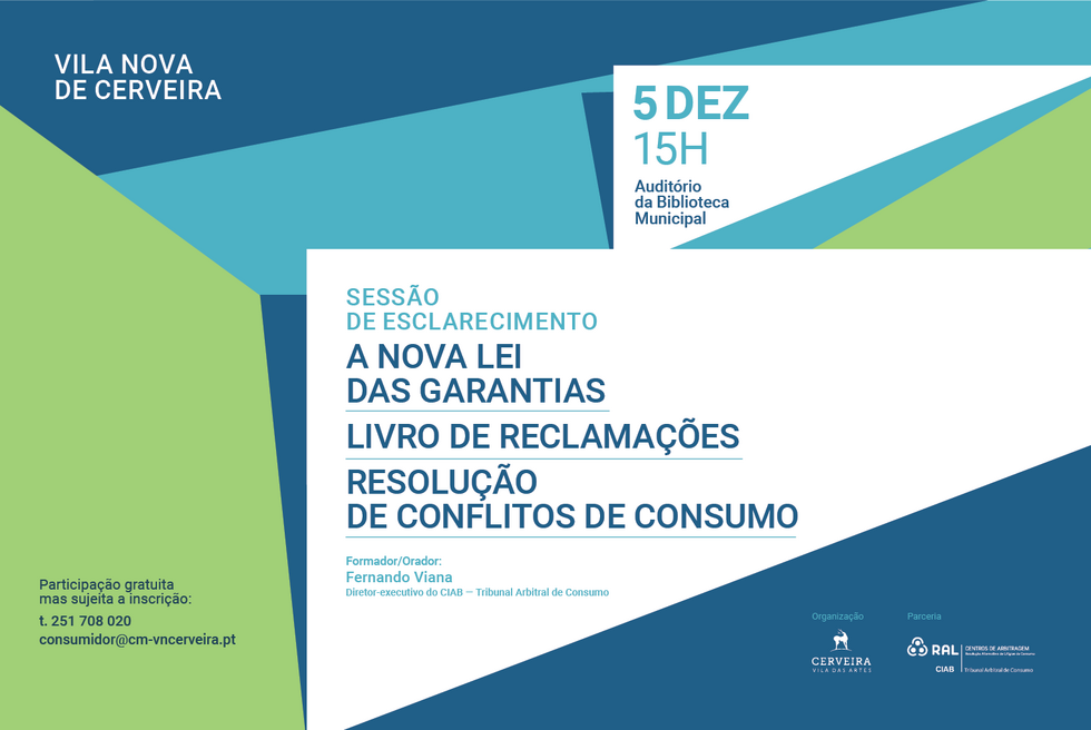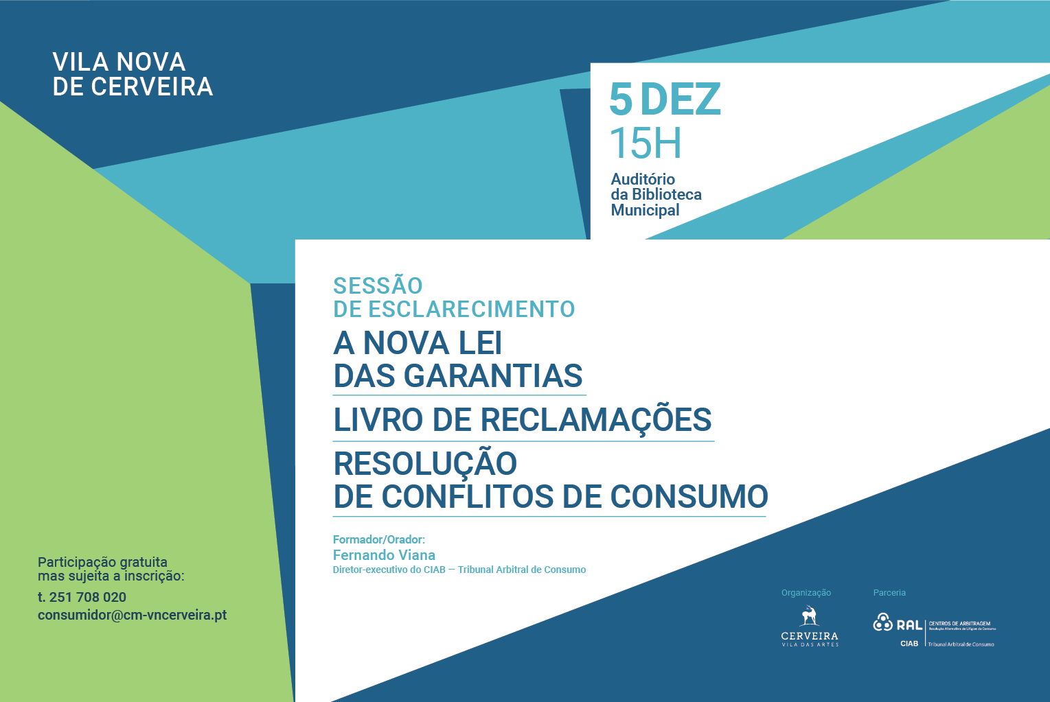 A Câmara Municipal de Vila Nova de Cerveira e o CIAB - Tribunal Arbitral de Consumo promovem, na próxima terça-feira, 5 de dezembro, uma sessão de esclarecimento sobre “A Nova Lei da Garantias, O Livro de Reclamações e a Resolução de Conflitos de Consumo”, destinada aos comerciantes e aos consumidores.
