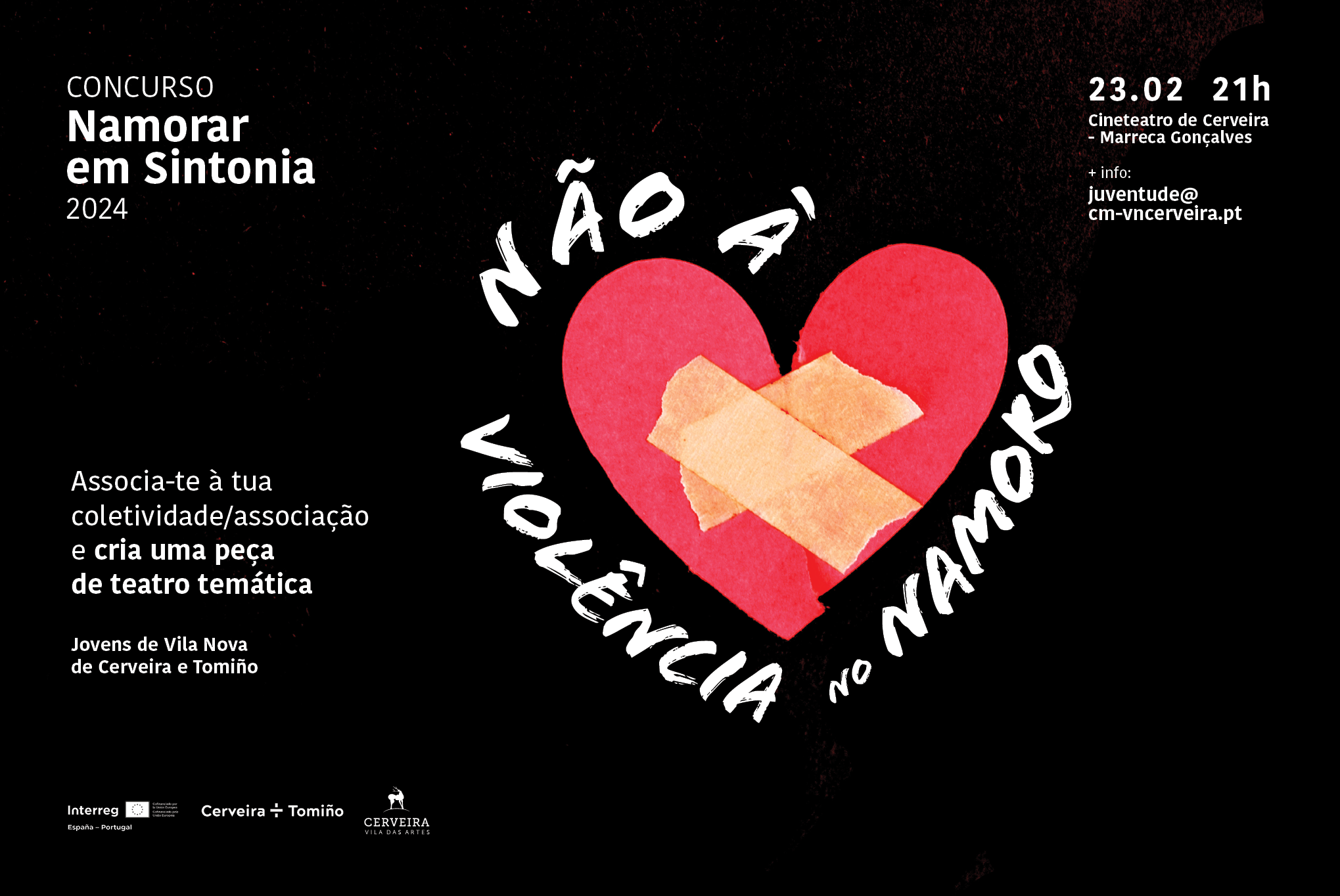 Procurando sensibilizar os jovens para a problemática da violência no namoro, consubstanciada em relações tóxicas e comportamentos abusivos, a Câmara Municipal de Vila Nova de Cerveira está a desafiar os jovens de Vila Nova de Cerveira e de Tomiño para o concurso de teatro ‘Namorar em Sintonia’. Cada grupo participante tem de criar uma peça de teatro original para ser apresentada a 23 de fevereiro, a partir das 21h00, no Cineteatro de Cerveira - Marreca Gonçalves. Inscrições estão abertas até ao dia 6.