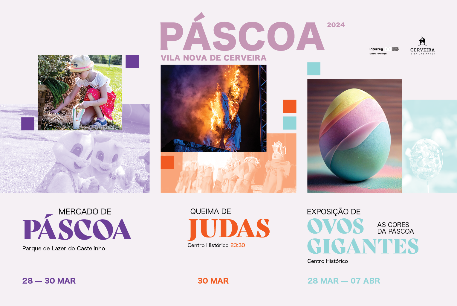 Nos dias que antecedem a Páscoa, de 28 a 30 de março, o Mercado de Páscoa de Vila Nova de Cerveira instala-se no Parque de Lazer do Castelinho, com a venda de produtos artesanais, gastronomia diversa e doçaria tradicional, além de apresentar um conjunto variado de ofícios alusivos à quadra festiva. Ao longo dos três dias, o conjunto de atividades programadas também surpreende por privilegiar a criação de momentos familiares únicos e que ficarão na memória.