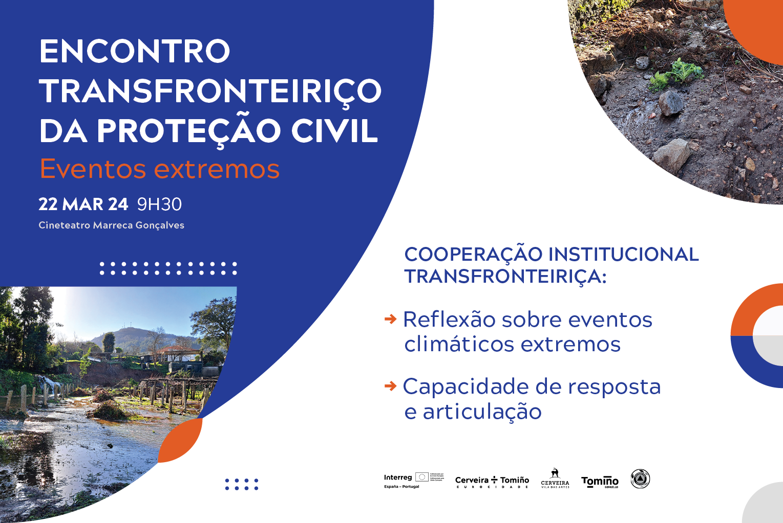 Enquadrado nas comemorações do mês da Proteção Civil Alto Minho, dinamizadas pela Autoridade Nacional de Emergência e Proteção Civil (ANEPC), o Encontro Transfronteiriço da Proteção Civil – Eventos Extremos, agendado para dia 22 de março, tem como objetivo uma reflexão baseada na cooperação institucional transfronteiriça sobre os últimos eventos (inundações) e na capacidade de resposta e articulação, além da divulgação de investimentos e recursos euroregionais para a mitigação de riscos.