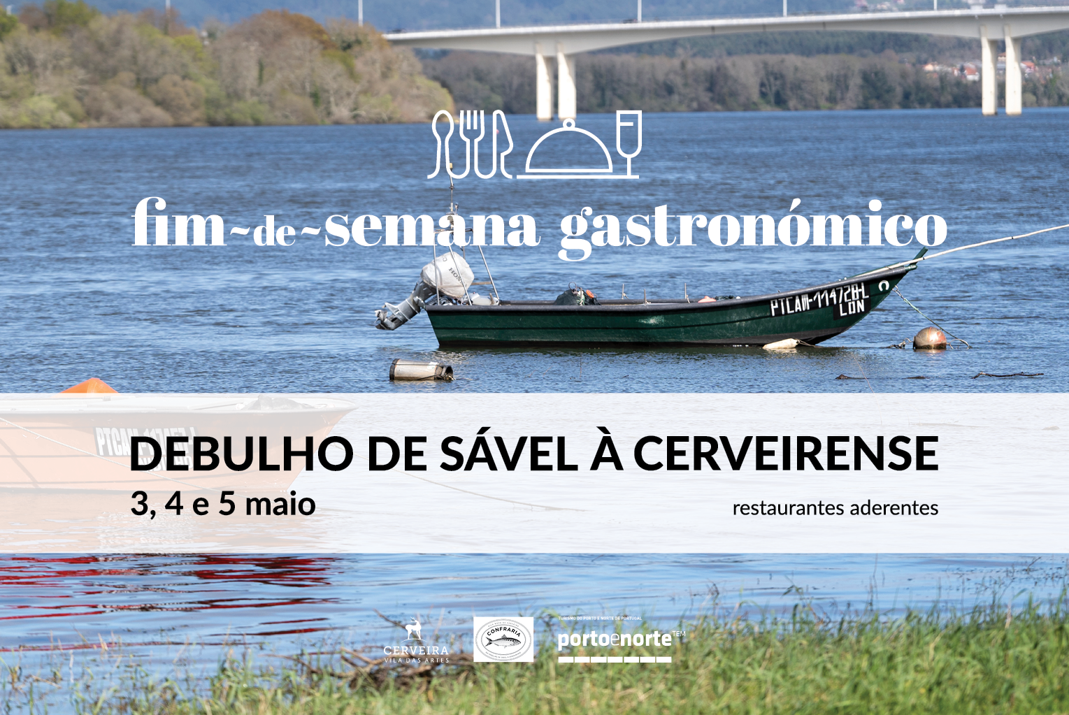 Vila Nova de Cerveira celebra a gastronomia tradicional com sabor ao rio Minho. Durante este primeiro fim-de-semana de maio (dias 3 a 5), 10 restaurantes do concelho disponibilizam nos seus cardápios o singular Debulho de Sável à Cerveirense. Iniciativa integra a XV edição dos Fins-de-Semana Gastronómicos, promovida pelo Turismo do Porto e Norte de Portugal em parceria com a Câmara Municipal e a Confraria do Debulho de Sável à Cerveirense.