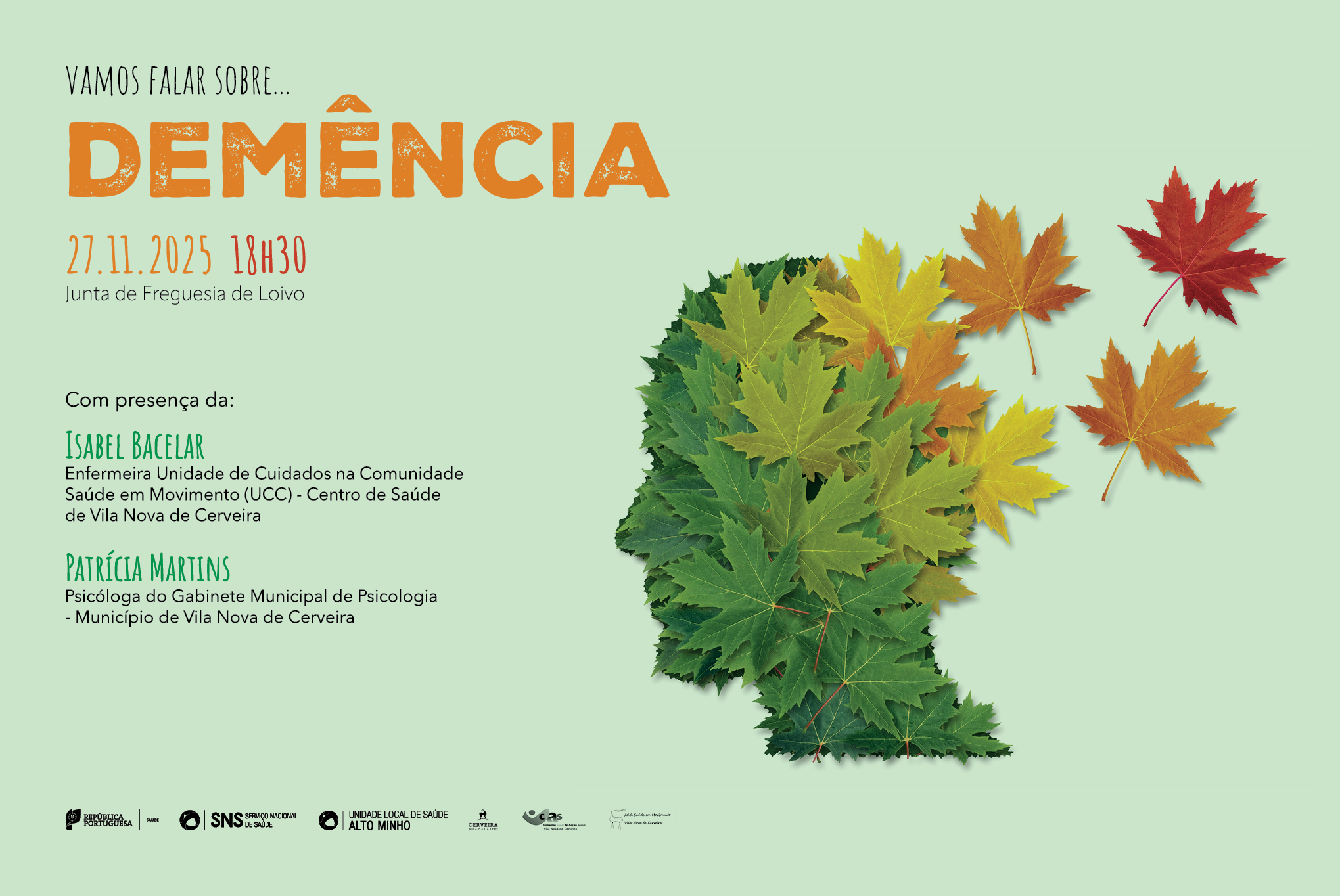 A Câmara Municipal de Vila Nova de Cerveira, através da Rede Social, promove, na próxima quinta-feira, dia 27 de novembro, às 18h30, na Junta de Freguesia de Loivo, a iniciativa “Vamos Falar sobre Demência?”, dirigida a toda a comunidade.