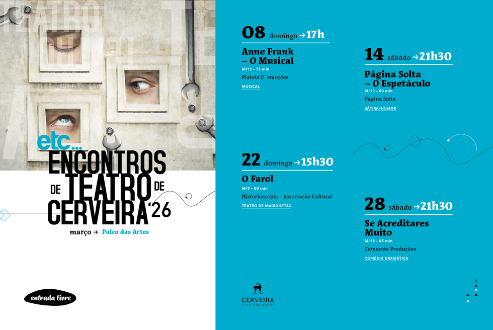 A Câmara Municipal de Vila Nova de Cerveira apresenta a edição 2026 dos ETC… Encontros de Teatro de Cerveira, um ciclo de espetáculos a decorrer durante o mês de março, no Palco das Artes, com entrada gratuita.