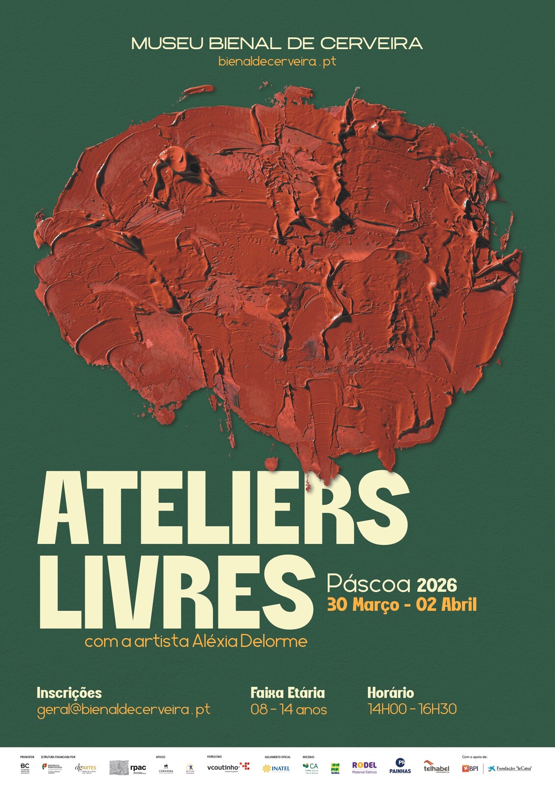 Os ateliers decorrerão diariamente entre as 14h00 e as 16h30, com um custo total de 20€. As inscrições encontram-se abertas até 23 de março, são limitadas e podem ser efetuadas através do e-mail: geral@bienaldecerveira.pt.