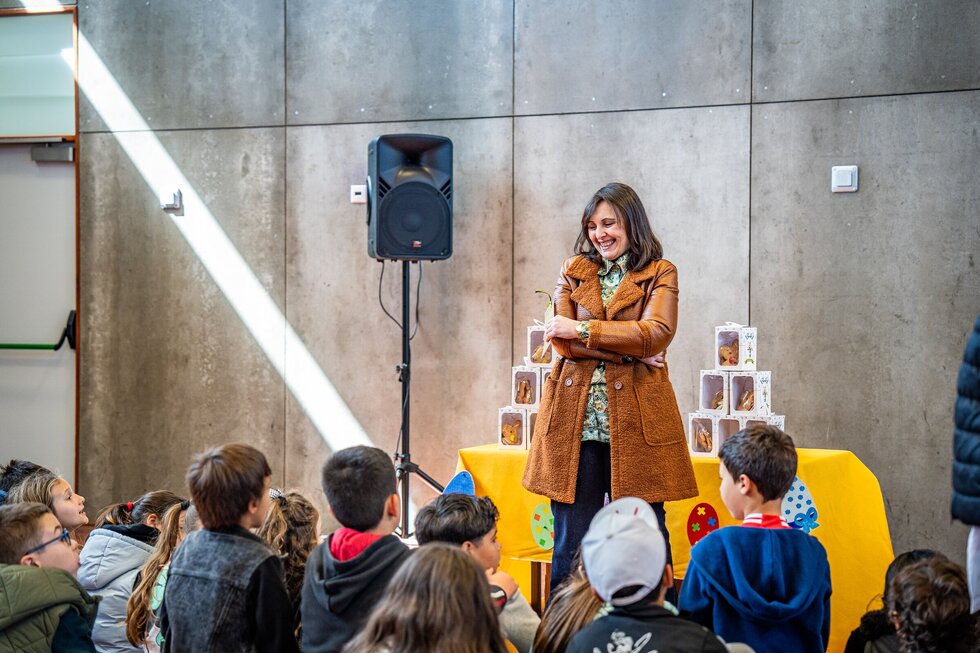 No que diz respeito à celebração da Páscoa, a Vereadora da Educação entregou a cada criança/aluno, bem como ao pessoal docente e não docente, um miminho simbólico: uma caixa de bolachas artesanais produzidas no concelho. “Mais do que um gesto simbólico, esta é também uma forma de apoiar a produção local, valorizar os sabores da nossa terra e reforçar o sentimento de identidade e pertença à comunidade”, disse.