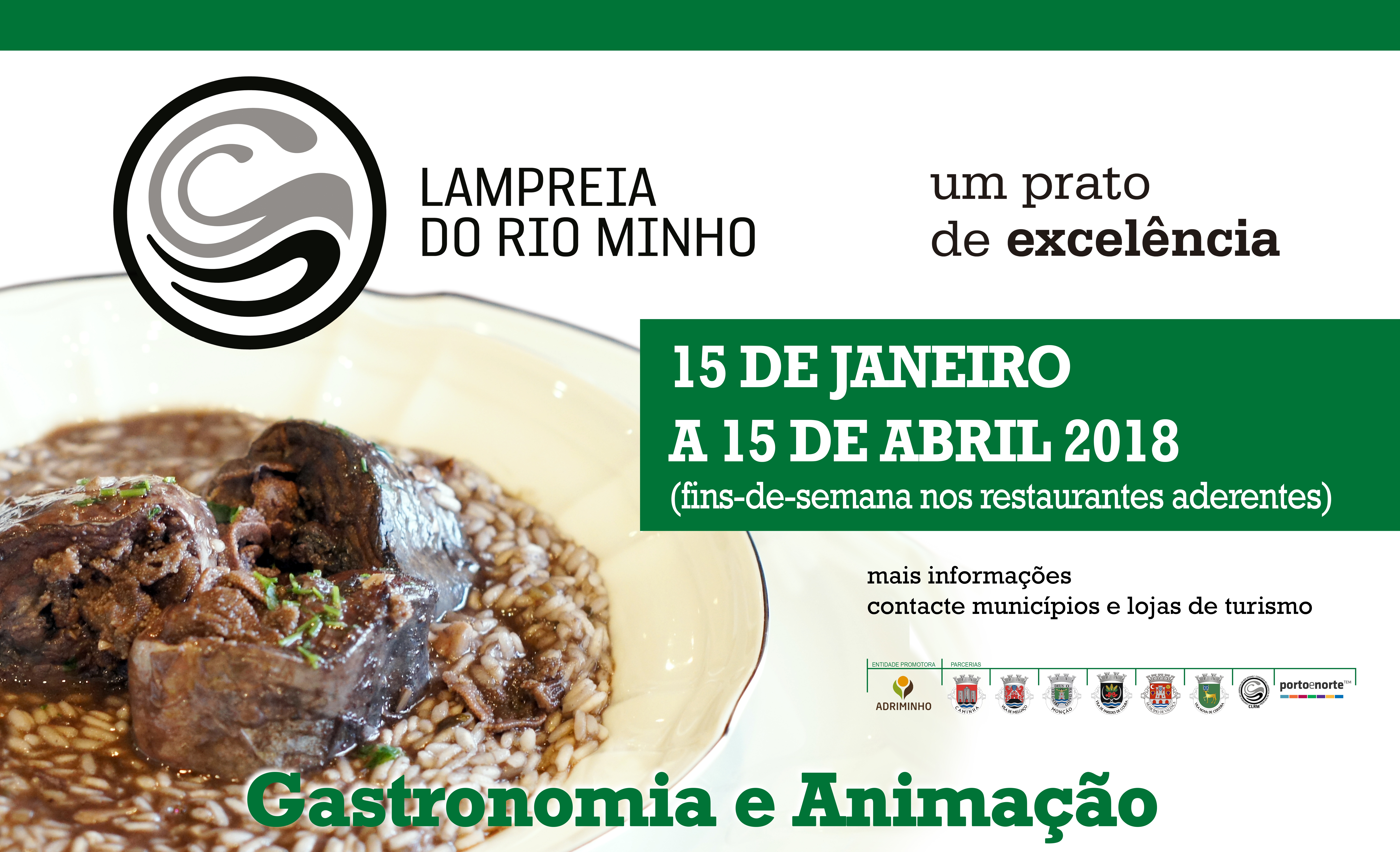 Até 15 de abril, Vila Nova de Cerveira integra mais uma edição da ‘Lampreia do Rio Minho – Um Prato de Excelência’, iniciativa de promoção gastronómica e de animação dinamizada pela Adriminho, em parceria com os seis municípios do Vale do Minho. À mesa dos 15 restaurantes cerveirenses aderentes serve-se a lampreia da forma mais tradicional, convidando a saborear o arroz de lampreia e o arroz à bordalesa.