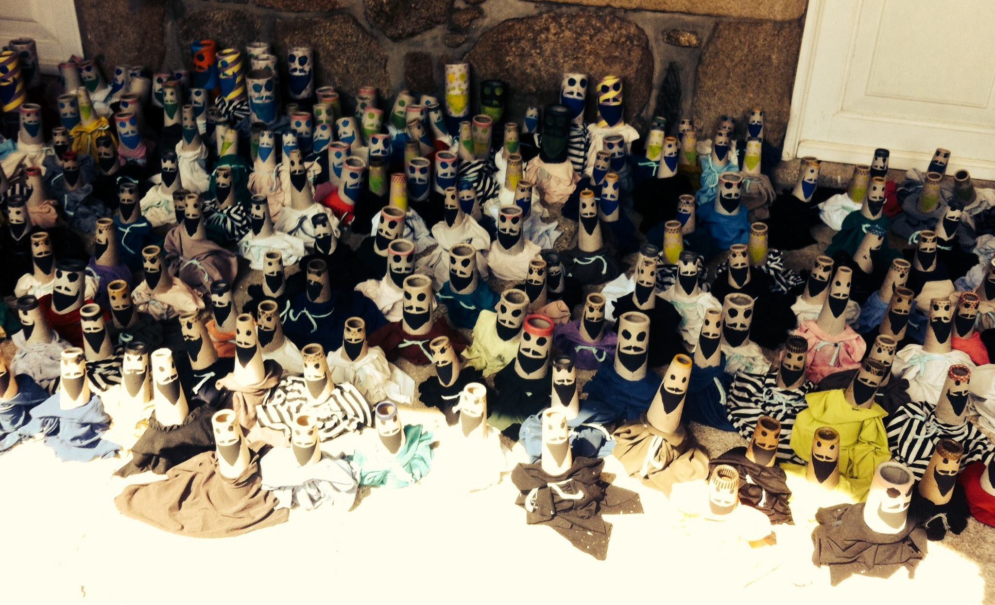 Estes bonecos coloridos são, previamente, elaborados pelas crianças dos ATL’S do concelho e população em geral.
