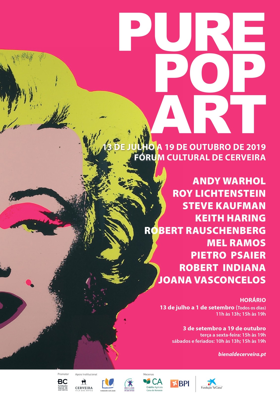 A exposição “PURE POP ART” traz ao Museu Bienal de Cerveira a obra gráfica de alguns dos artistas mais representativos e icónicos da POP ART, movimento surgido na década de 1950 em Londres (Inglaterra) que alcançou a sua maturidade em Nova York (Estados Unidos da América) nos anos 60.