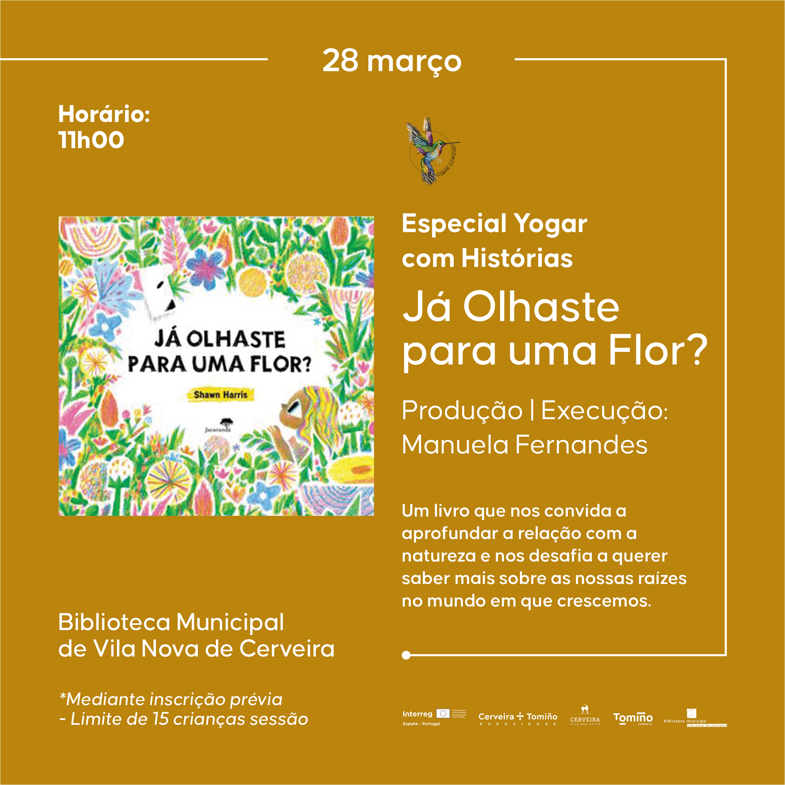 Recorrendo a posturas de yoga, exercícios de respiração e de relaxamento, este momento em família terá brincadeiras e partilhas ligadas à mensagem que a história transmite.