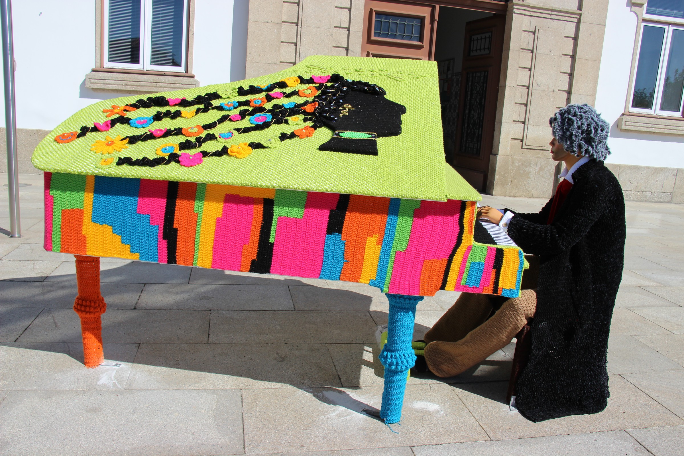 Mais um ano, e o roteiro do crochet arranca em plena escadaria do edifício da Câmara Municipal, onde se encontra instalado um imponente piano, todo forrado a crochet, com pianista e outros pequenos pormenores que tornam este cenário convidativo para um primeiro registo fotográfico.