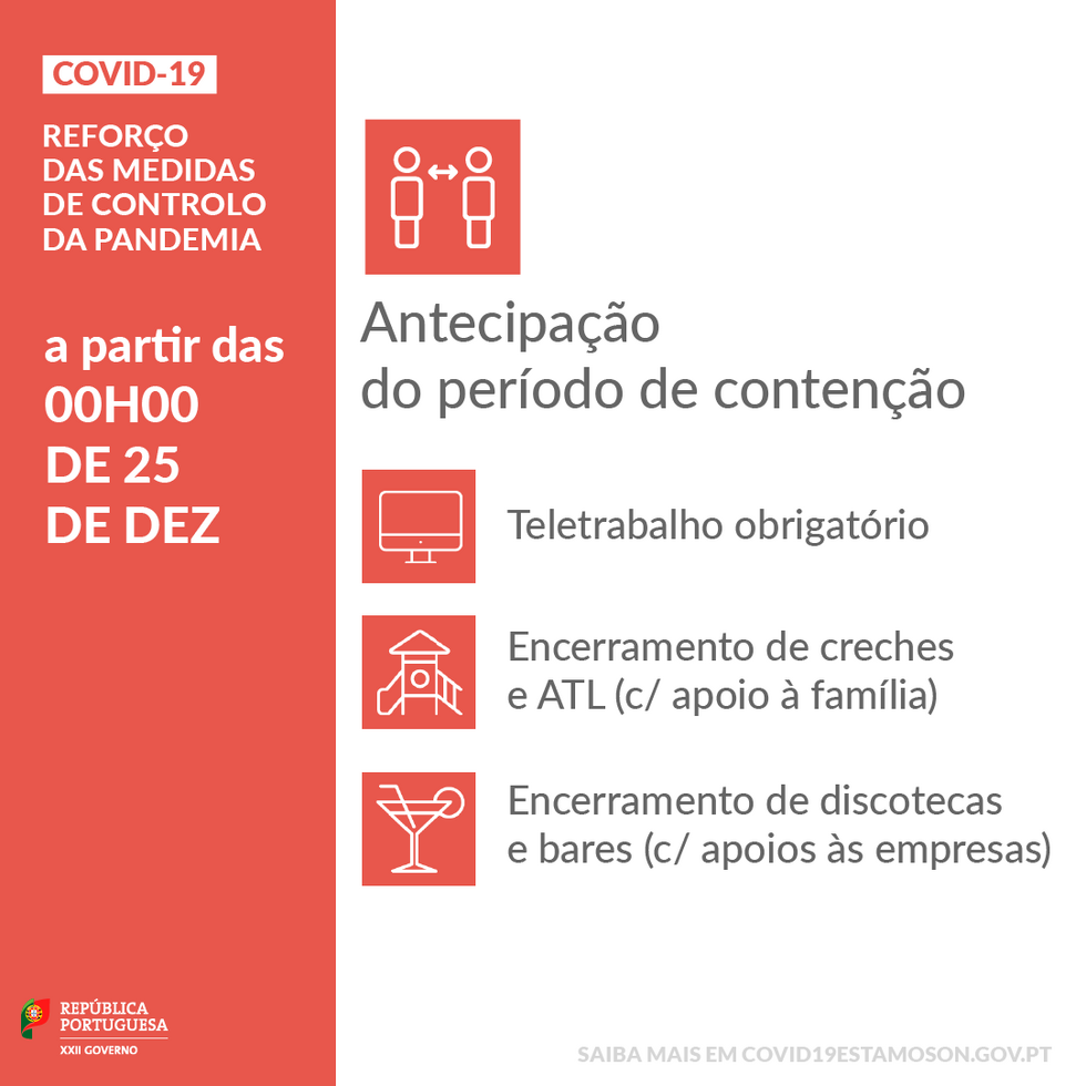 - Período de contenção antecipado para as 00h de dia 25 de dezembro;